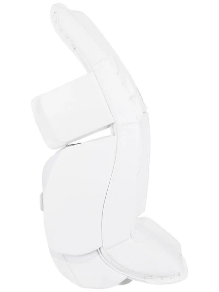 – Face : La configuration de la rupture sur la botte CCM E-Flex 5.5 se compose d’une rupture externe, associée à une rupture simple interne pré-incurvée. Cela donne aux gardiens de but une flexibilité au niveau du genou et une fermeture à cinq trous, tout en maintenant l’étanchéité de la botte à la glace.