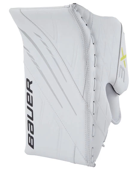 – Manchette : Bauer utilise sa mousse Aerolite dans la manchette doublée d’un matériau CatchGrip plus résistant à l’abrasion pour se protéger contre les sangles de poignet velcro du plastron. Ce nouveau brassard est asymétrique et plus évasé que précédemment, offrant une grande mobilité du poignet et une grande amplitude de mouvement.