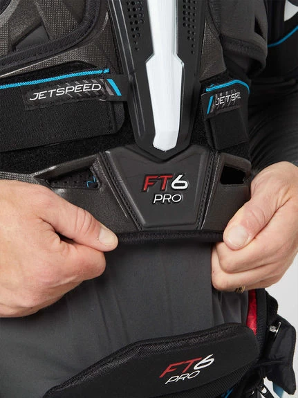 L’épaulière CCM JetSpeed FT6 Pro forme une protection ultime pour le joueur de niveau élite qui se nourrit de vitesse et d’agilité pour guider son équipe vers la victoire.