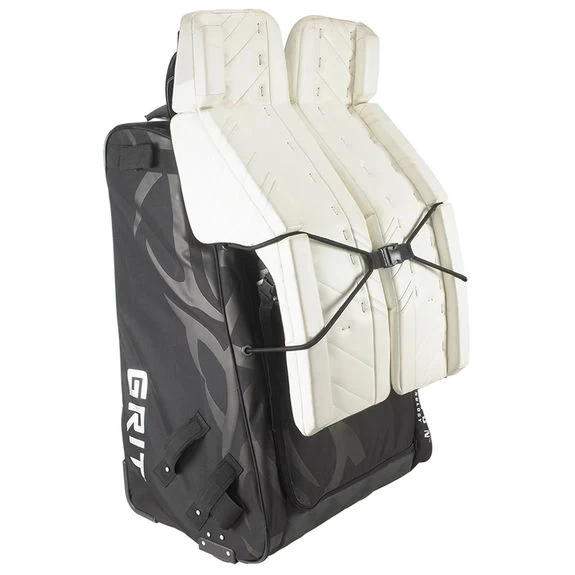 Le système d’étagères offre des compartiments pour la plupart de votre équipement. Patins, casque, bouclier, mitaine, plastron et culotte tiennent tous dans le compartiment principal en ayant des étagère séparées.